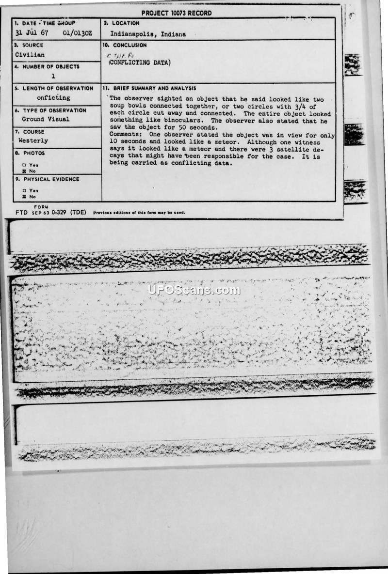 Project 10073 Record — Indianapolis, Indiana, 31 July 1967