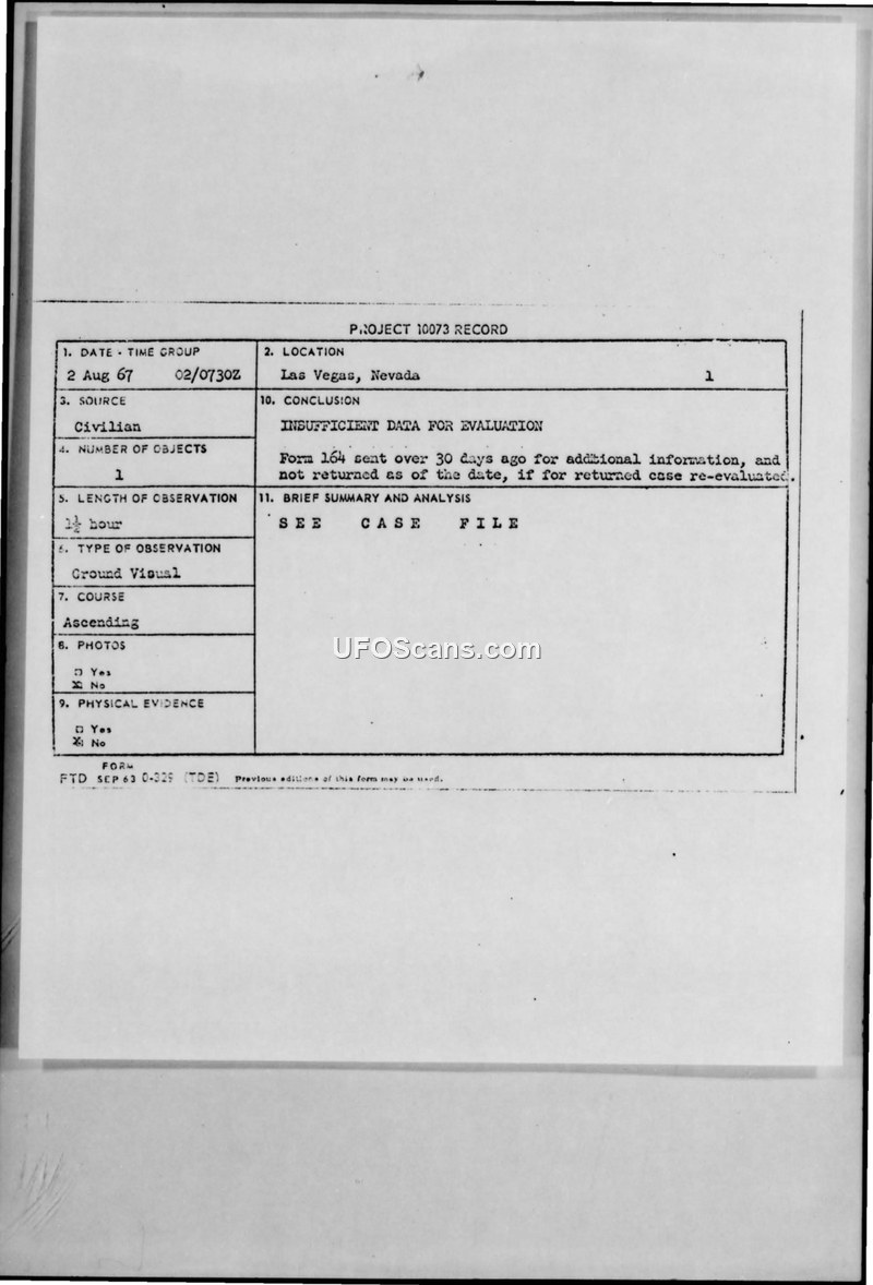 Project 10073 Record — Las Vegas, Nevada, 2 August 1967