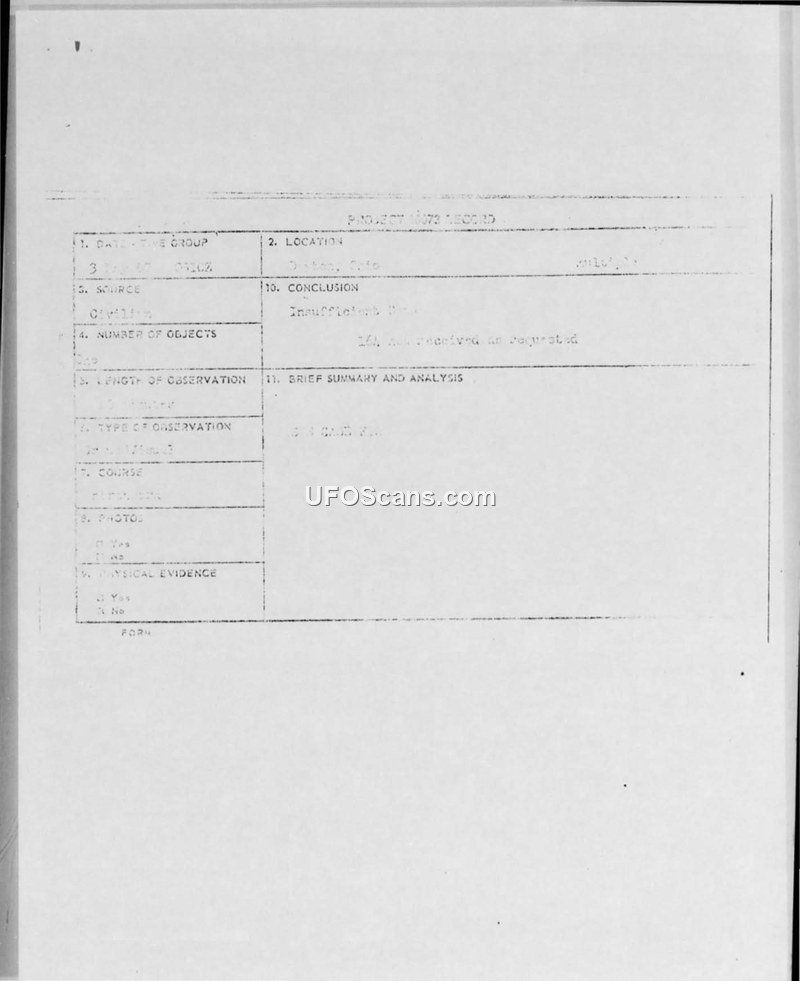 UFO Observation Report — Dayton, Ohio, May 3, 1967
