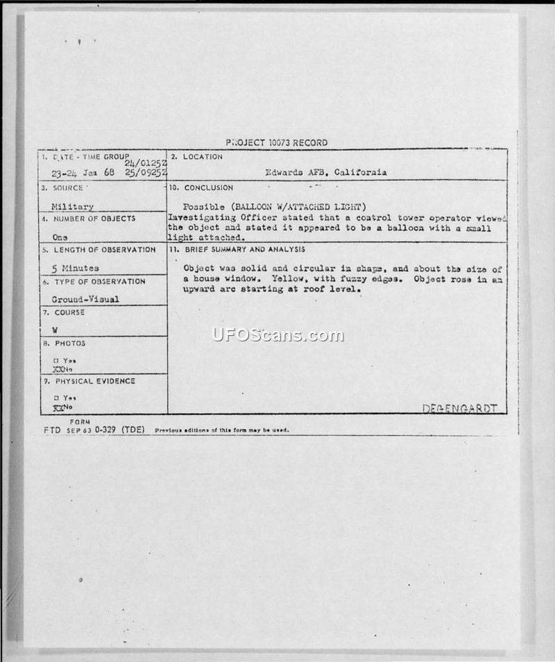 Project 10073 Record: Sighting at Edwards AFB, 23-24 January 1968