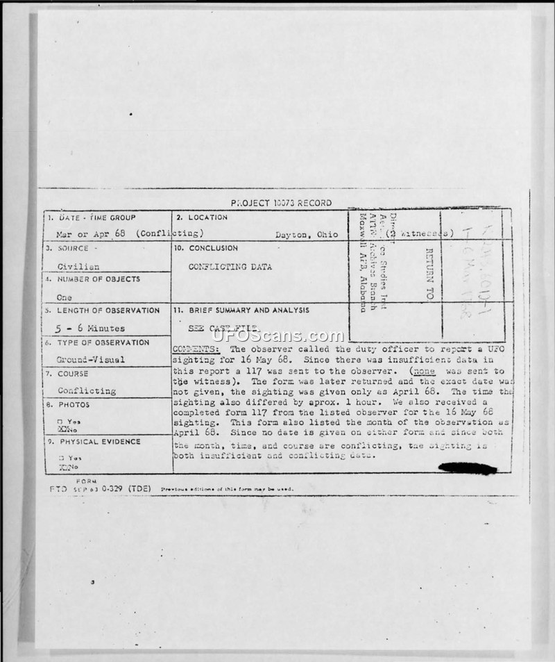 Project 10073 Records — Dayton, Ohio, March-May 1968