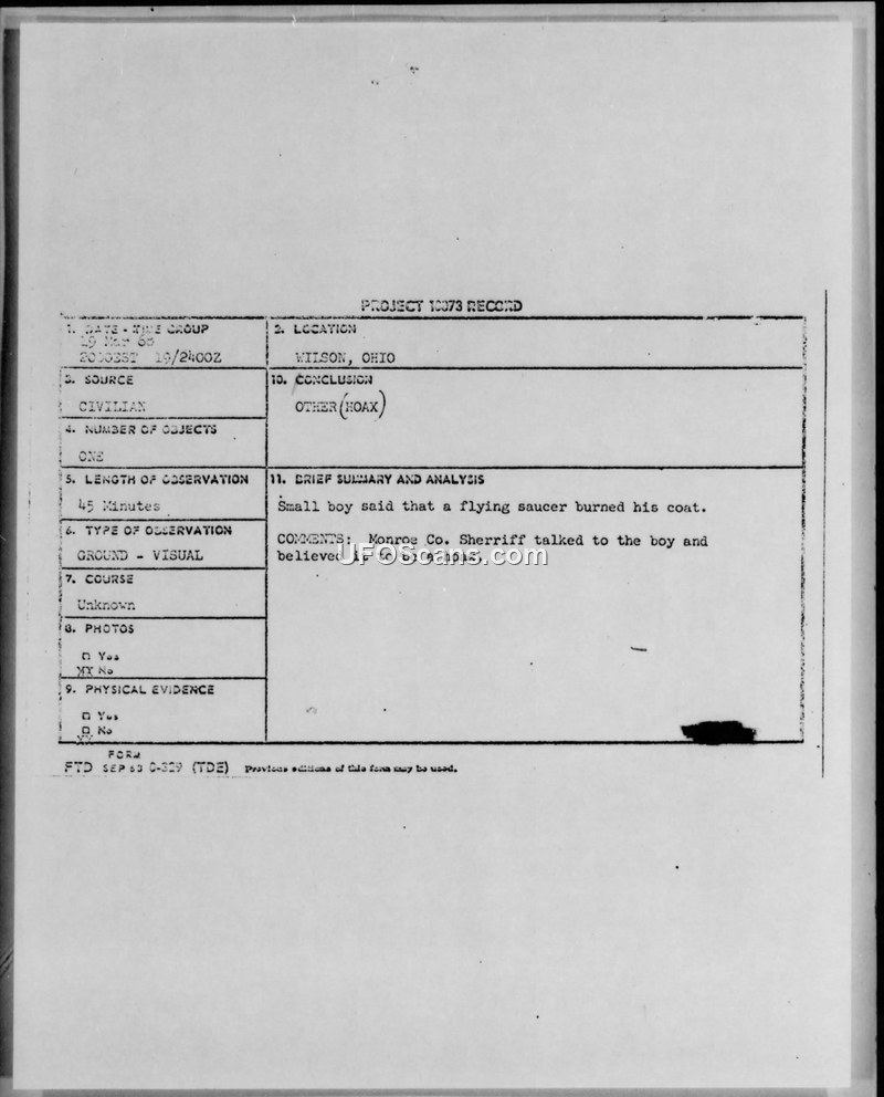 Project 10073 Record — Wilson, Ohio, 19 March 1968