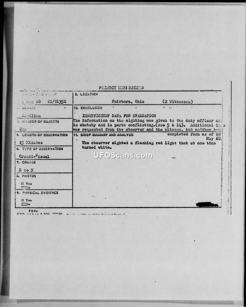 Project 10073 Record — Fairborn, Ohio, 1 April 1968