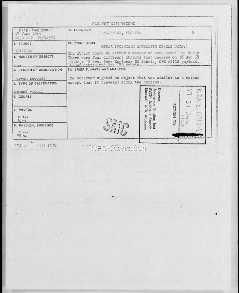 Project 10073 Record: Sighting Reports from Bradenton, Florida (May and June 1968)