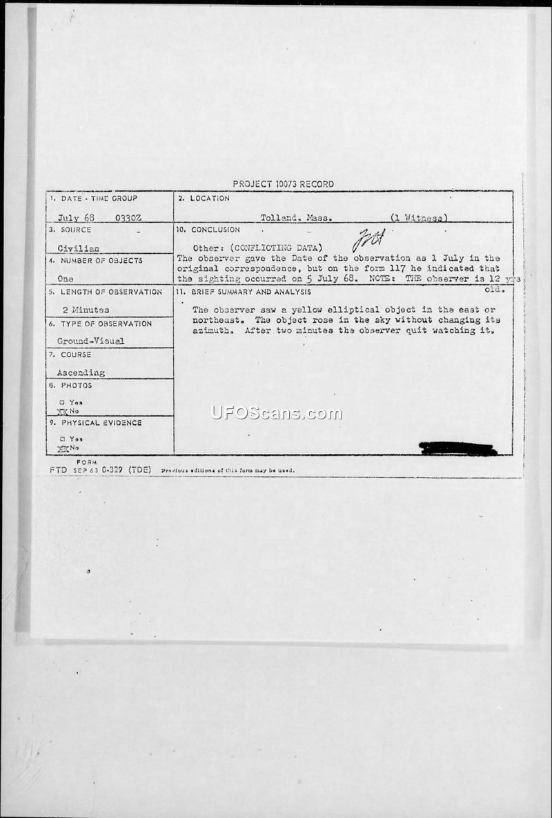 Project 10073 Record — Tolland, Mass., July 1968