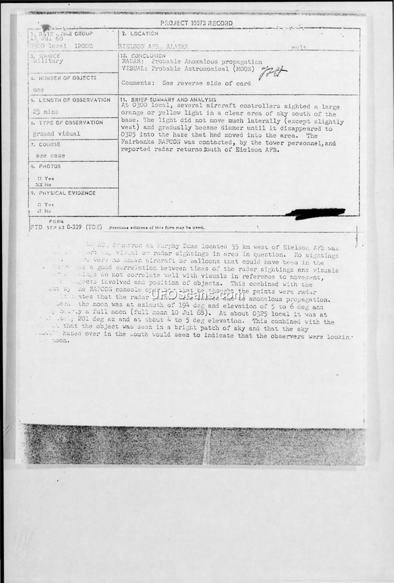 Project 10073 Record: Sighting at Eielson AFB, 11 July 1968
