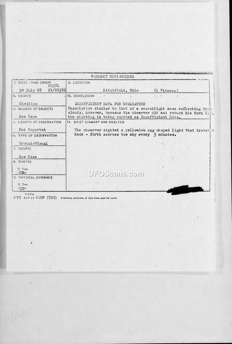 Project 10073 Record — Litchfield, Ohio, 20 July 1968