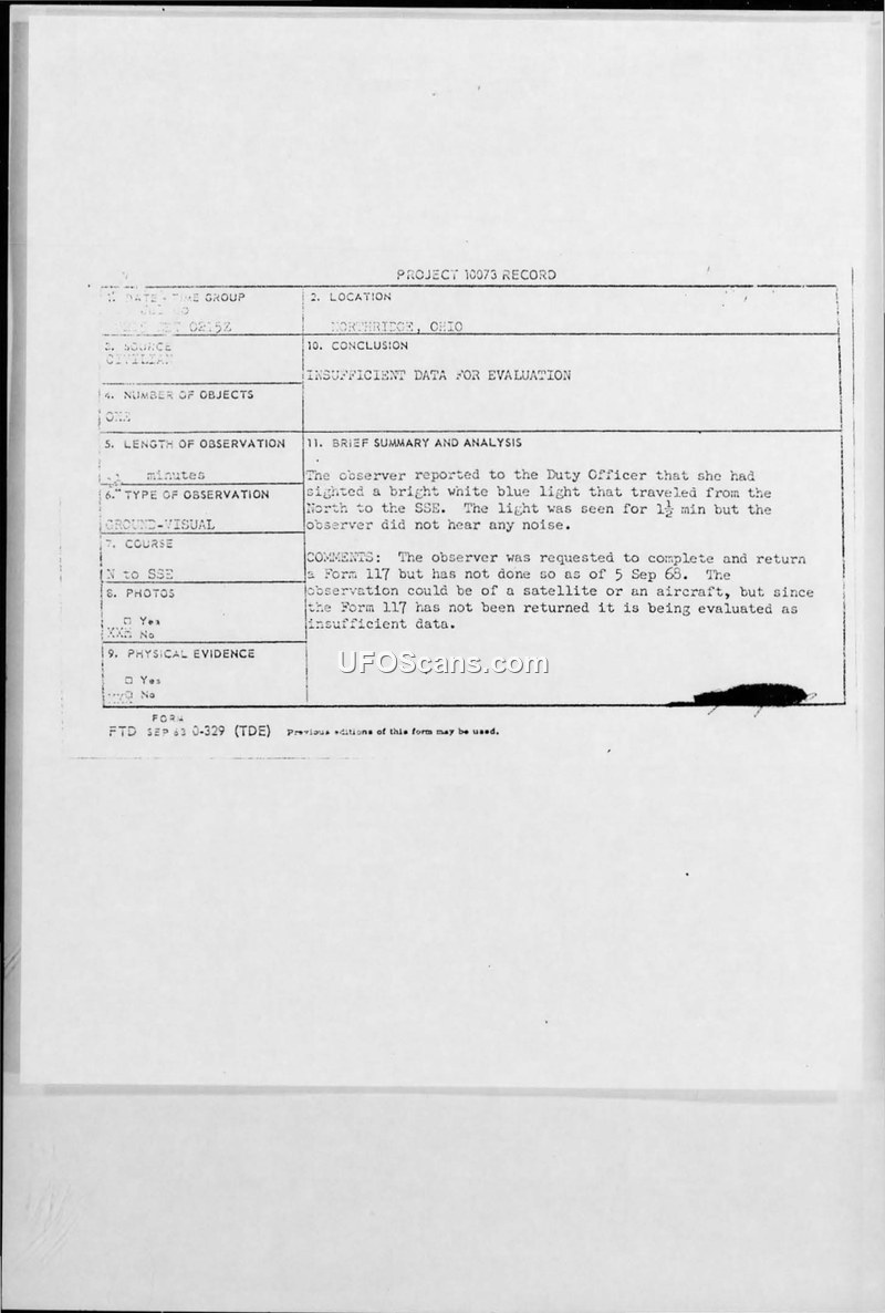 Project 10073 Record - Northridge, Ohio - 29 July 1968