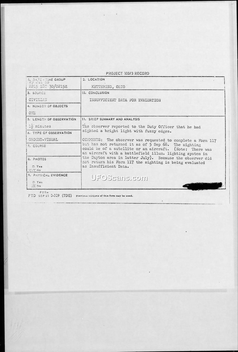Project 10073 Record — Kettering, Ohio, 29 July 1968