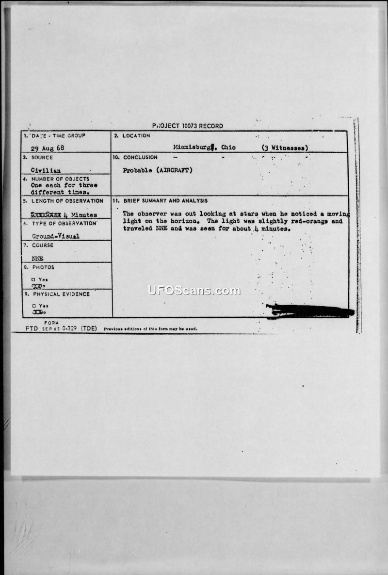 Project 10073 Record — Miamisburg, Ohio, 29 August 1968