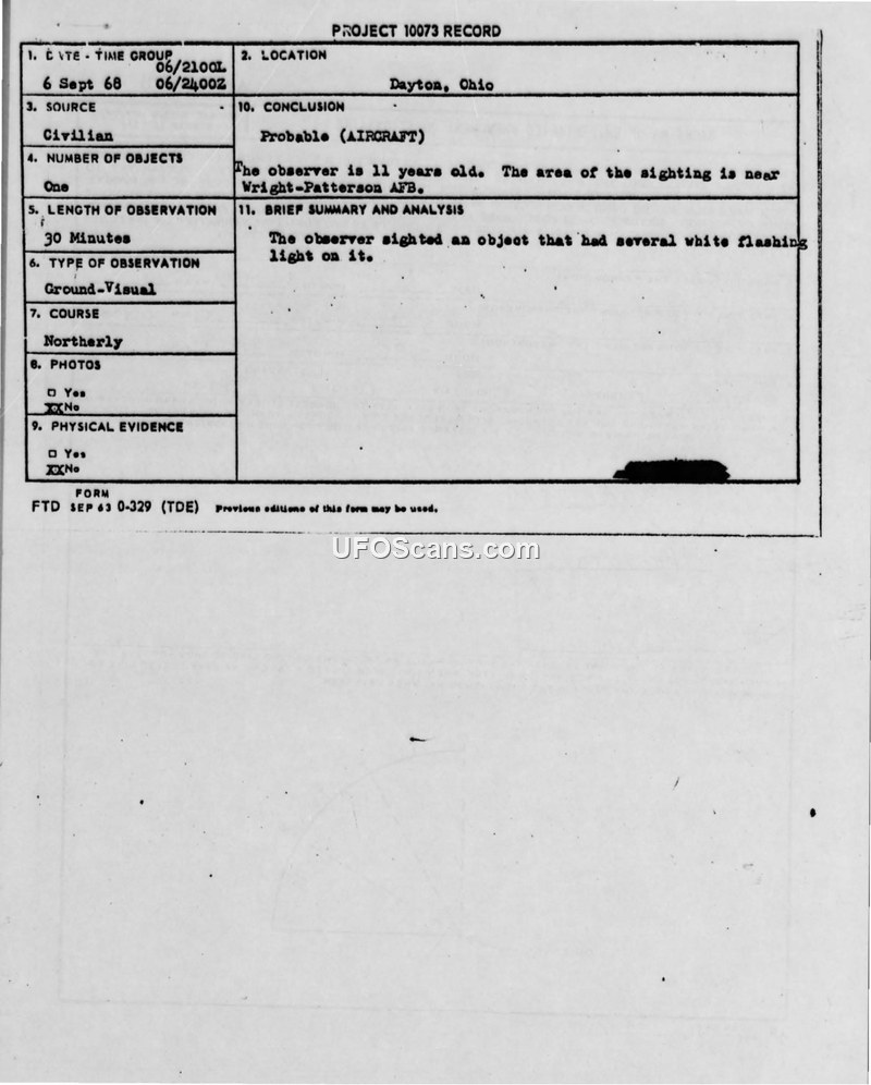 Project 10073 Records: UFO Sightings in Dayton, Ohio (September 1968)