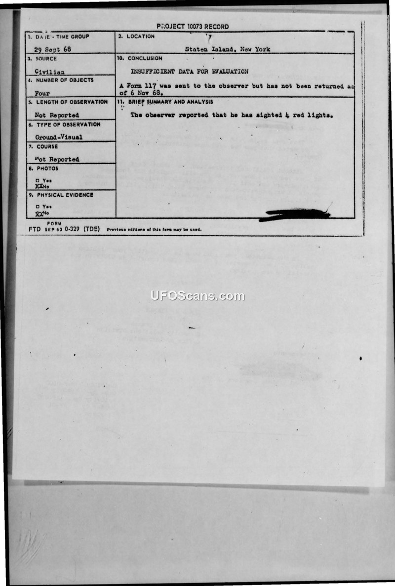 Project 10073 Record — Staten Island, New York, 29 September 1968
