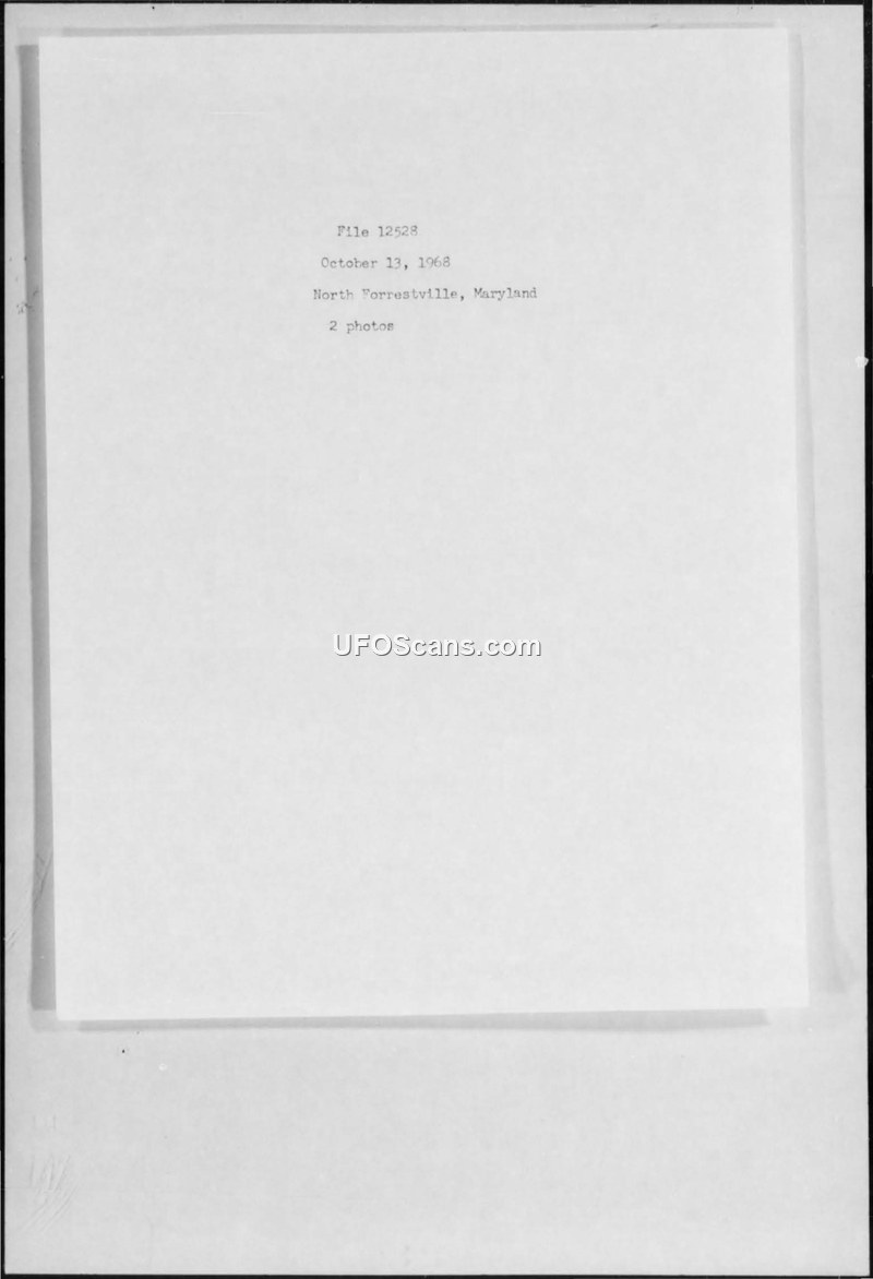 This document, identified as File 12528, serves as a brief record of a sighting incident that occurred on October 13, 1968, in North Forrestville, Maryland. The file contains minimal textual information, consisting only of the file number, the date of the incident, the location, and a notation indicating that two photographs are included as part of the record. The remaining pages of the document consist of these two photographs, which depict an unidentified object in the sky. No further narrative, witness testimony, or official analysis is provided within the provided pages.
