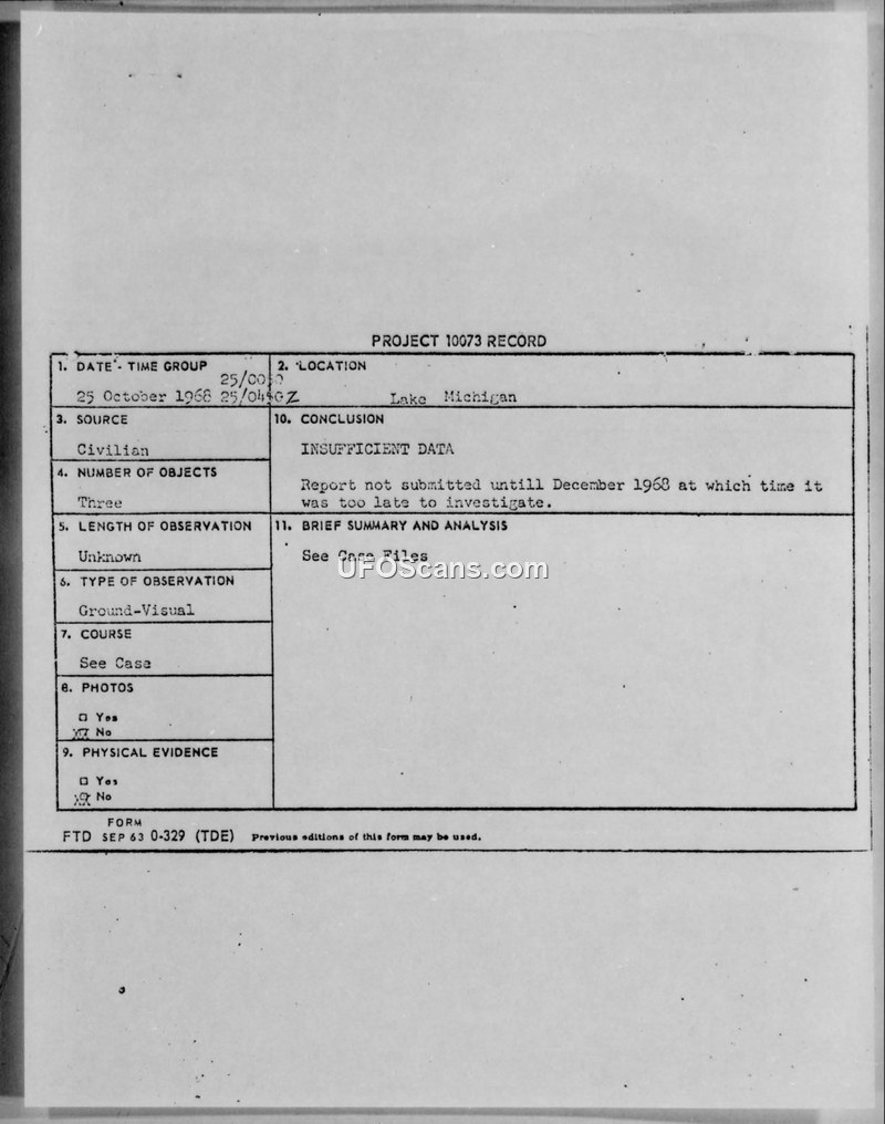 Project 10073 Record — Lake Michigan Sighting, October 25, 1968