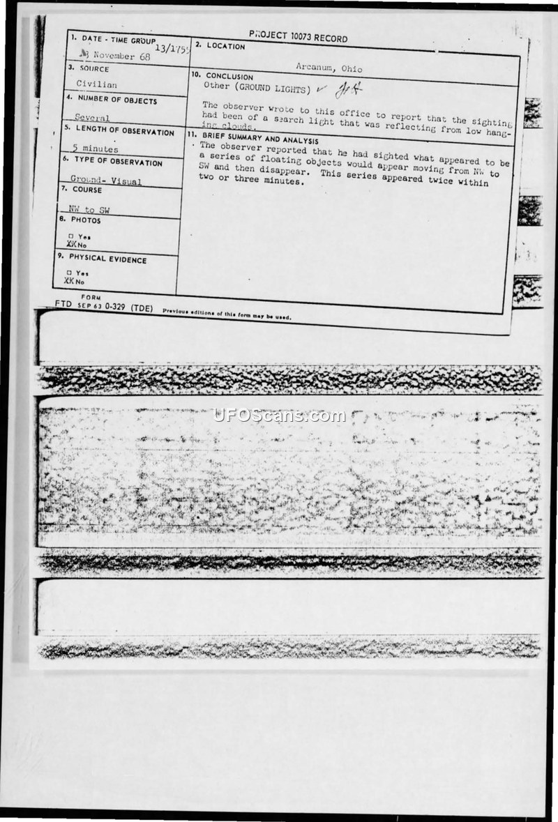 Project 10073 Record - Arcanum, Ohio - November 13, 1968