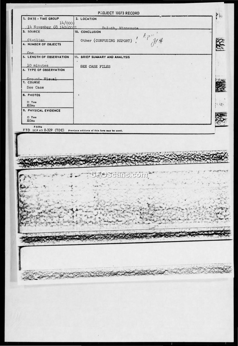 Project 10073 Record — Duluth, Minnesota, November 1968