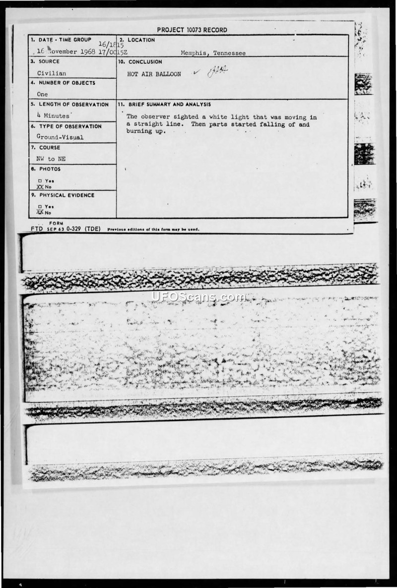 Project 10073 Record — Sighting of 16 November 1968, Memphis, Tennessee