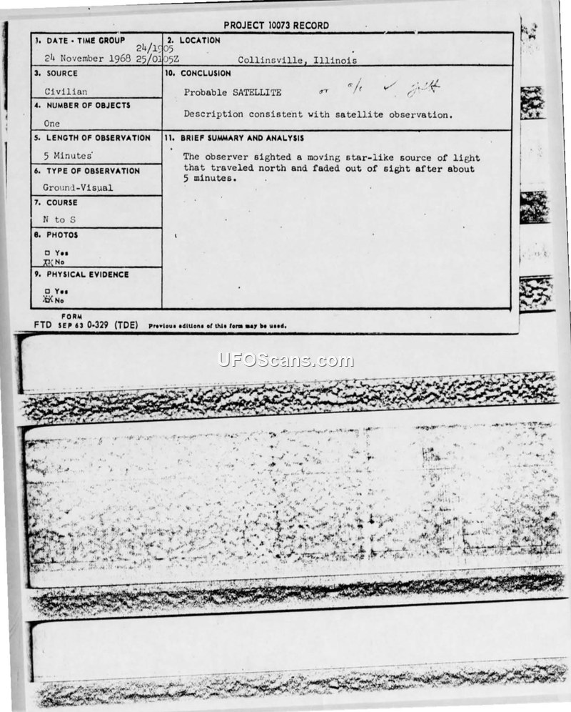 Project 10073 Record — Sighting Report, Collinsville, Illinois, 24 November 1968