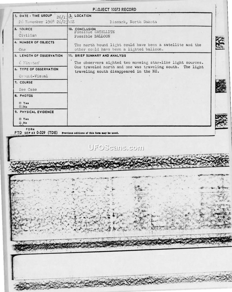 Project 10073 Record: Sighting Report - Bismarck, North Dakota, 26 November 1968