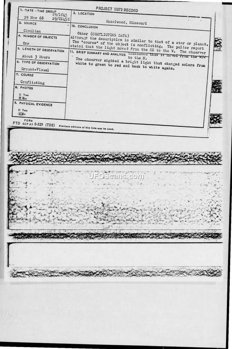 Project 10073 Record — Hazelwood, Missouri, 29 November 1968