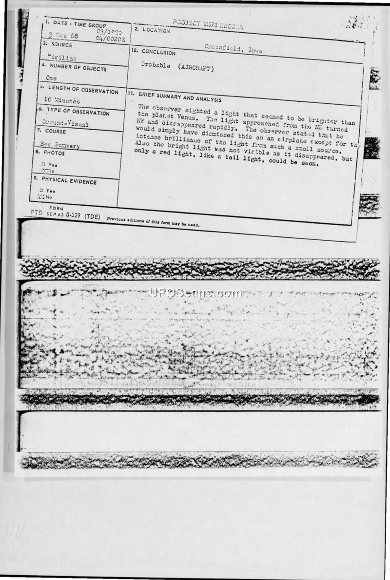 Project 10073 Record — Sighting Report, Greenfield, Iowa, 3 December 1968