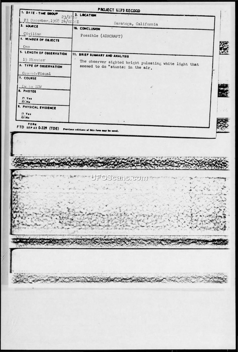UFO Observation, 23 Dec 1968 — Saratoga, California
