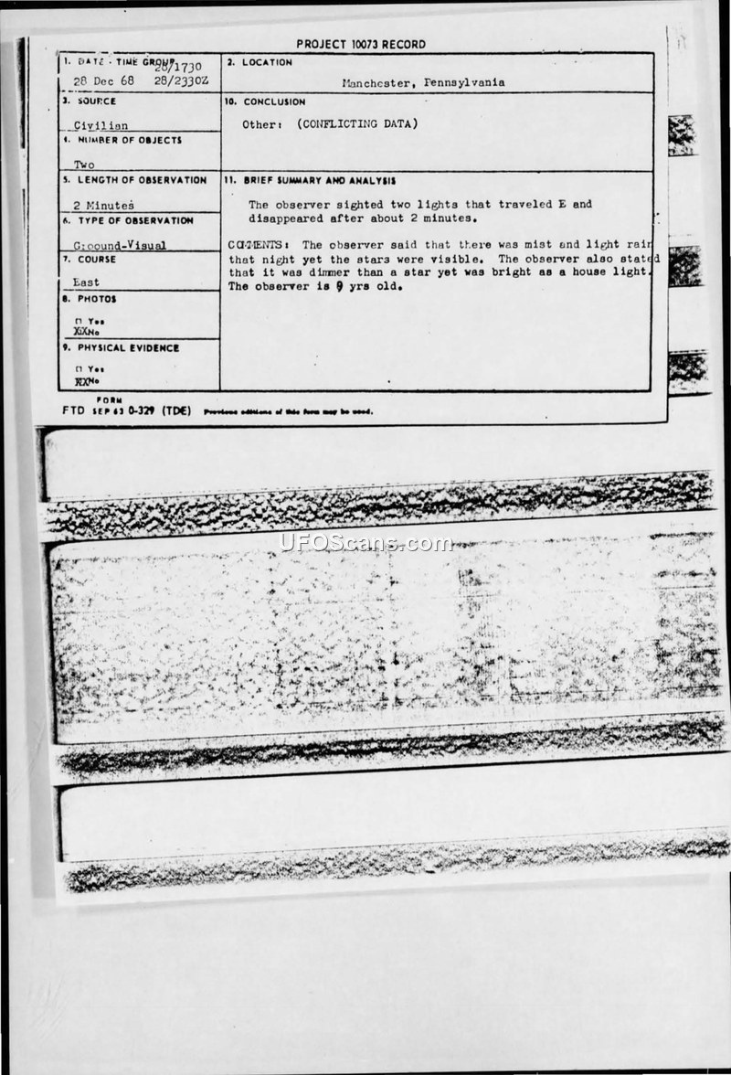 PROJECT 10073 RECORD — Manchester, Pennsylvania, 28 Dec 68