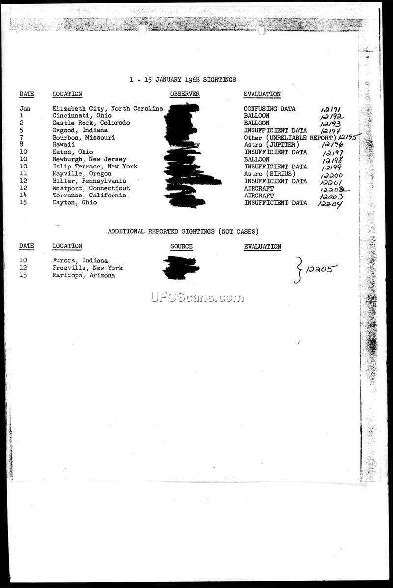 UFO/UAP Sightings Reports — January to December 1968