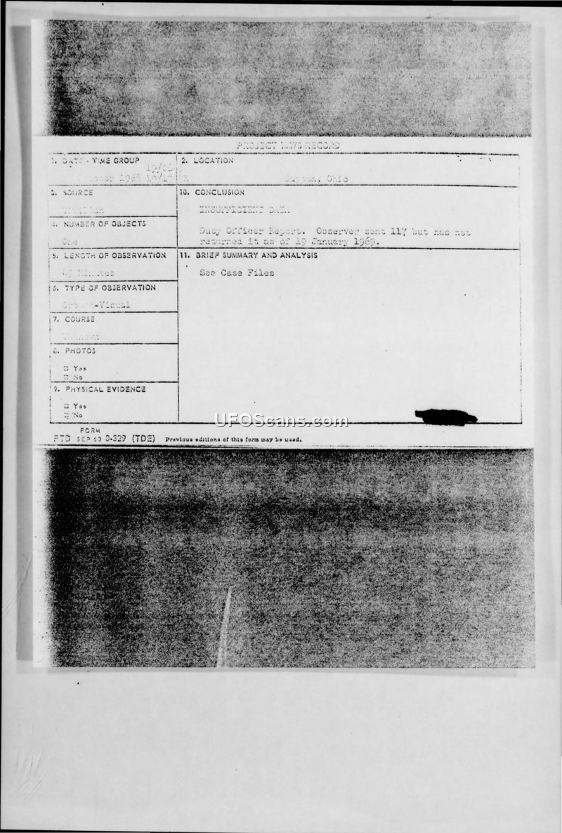 INSUFFICIENT DATA. Duty Officer Report. Observer sent 117 but has not returned it as of 19 January 1969.