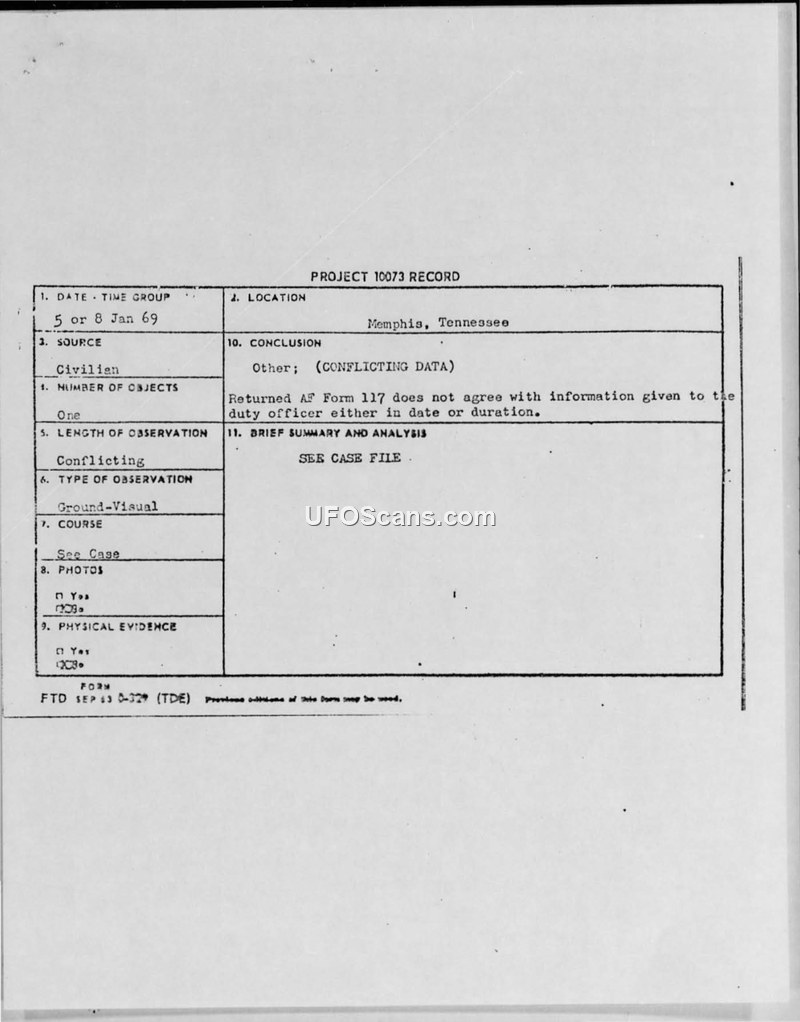 Project 10073 Record — Memphis, Tennessee, January 1969