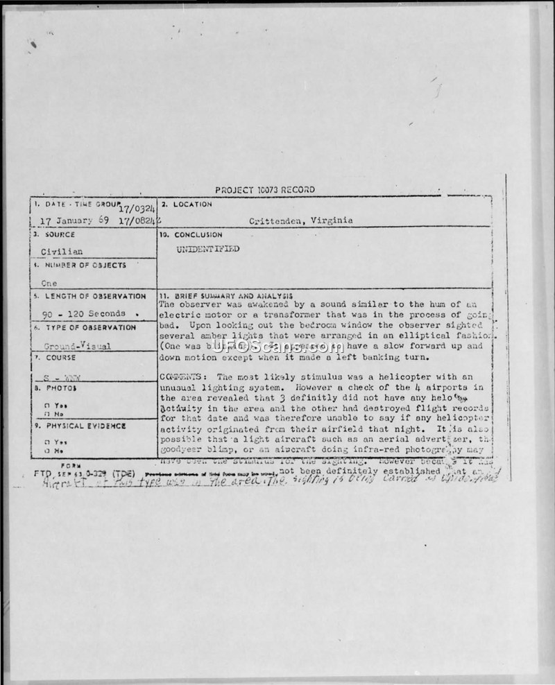 Project 10073 Record — Sighting of 17 January 1969, Crittenden, Virginia