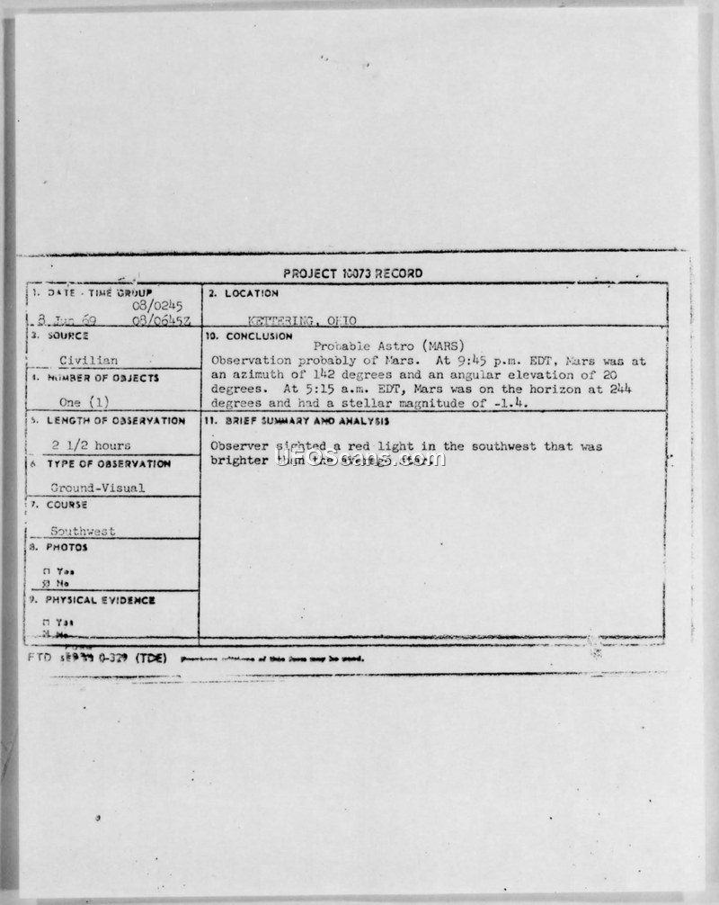 The June 8 sighting was identified as the planet Mars based on azimuth and elevation calculations. The June 10 sighting was identified as an aircraft from Wright-Patterson AFB using a battlefield illumination system.