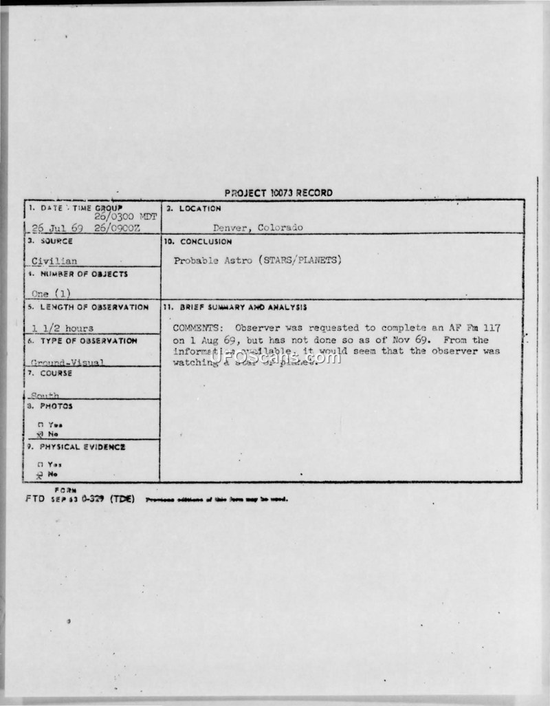 Project 10073 Record — Denver, Colorado, 26 July 1969