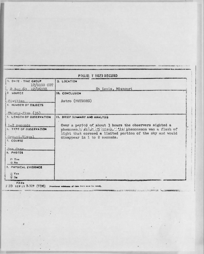 Project 10073 Record - St. Louis, Missouri Sighting