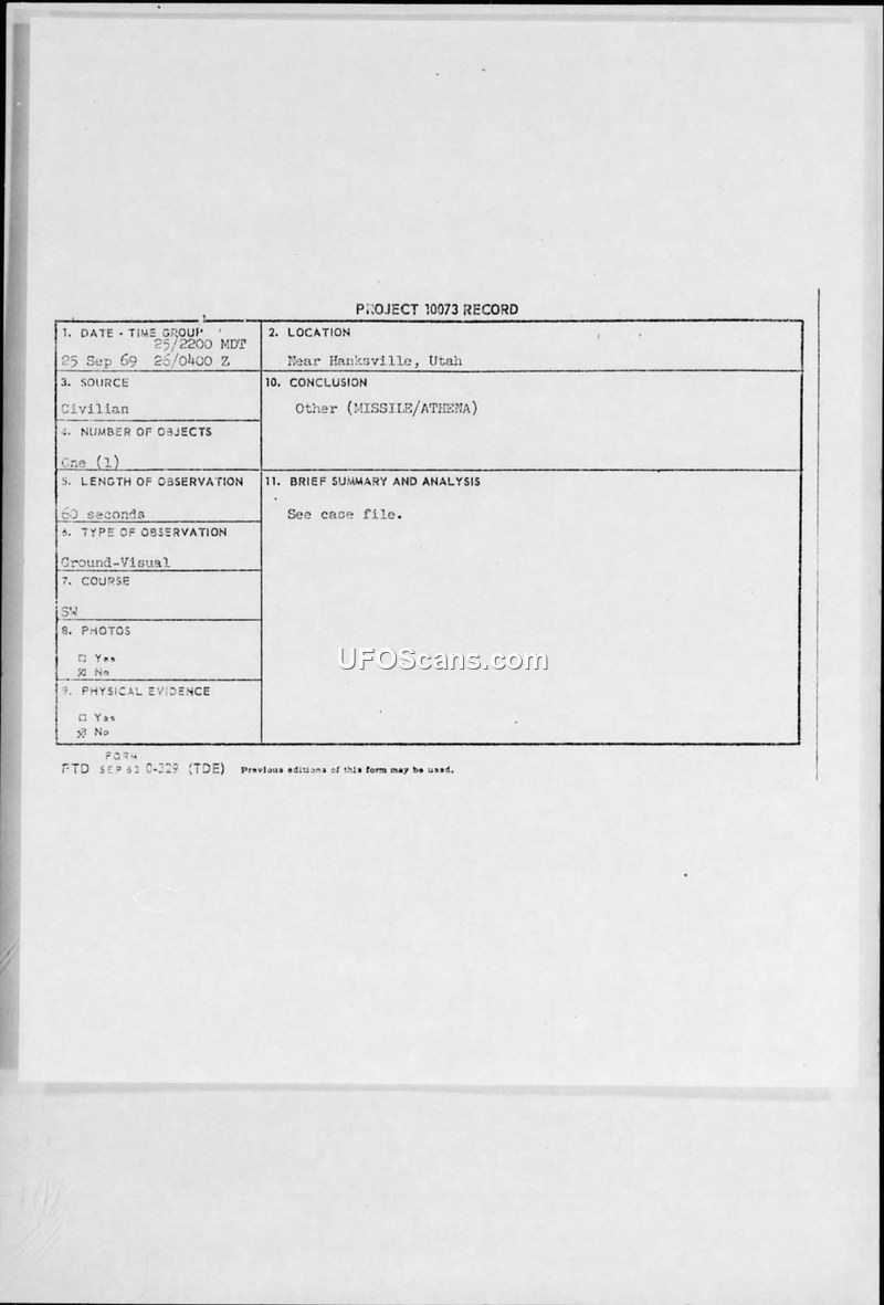 Project 10073 Record — Sighting near Hanksville, Utah, 25 Sep 69