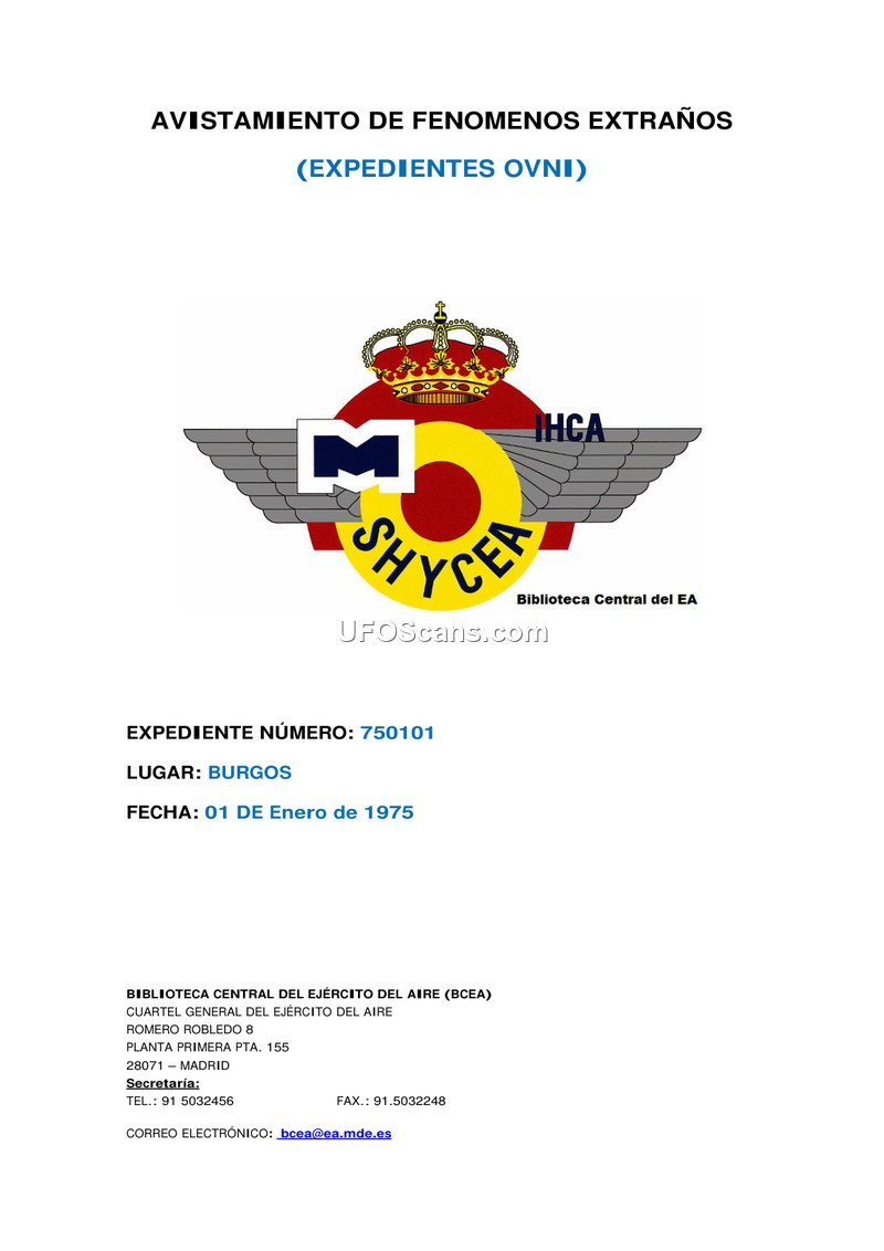 Expediente Número 750101: Avistamiento de Fenómenos Extraños en Burgos