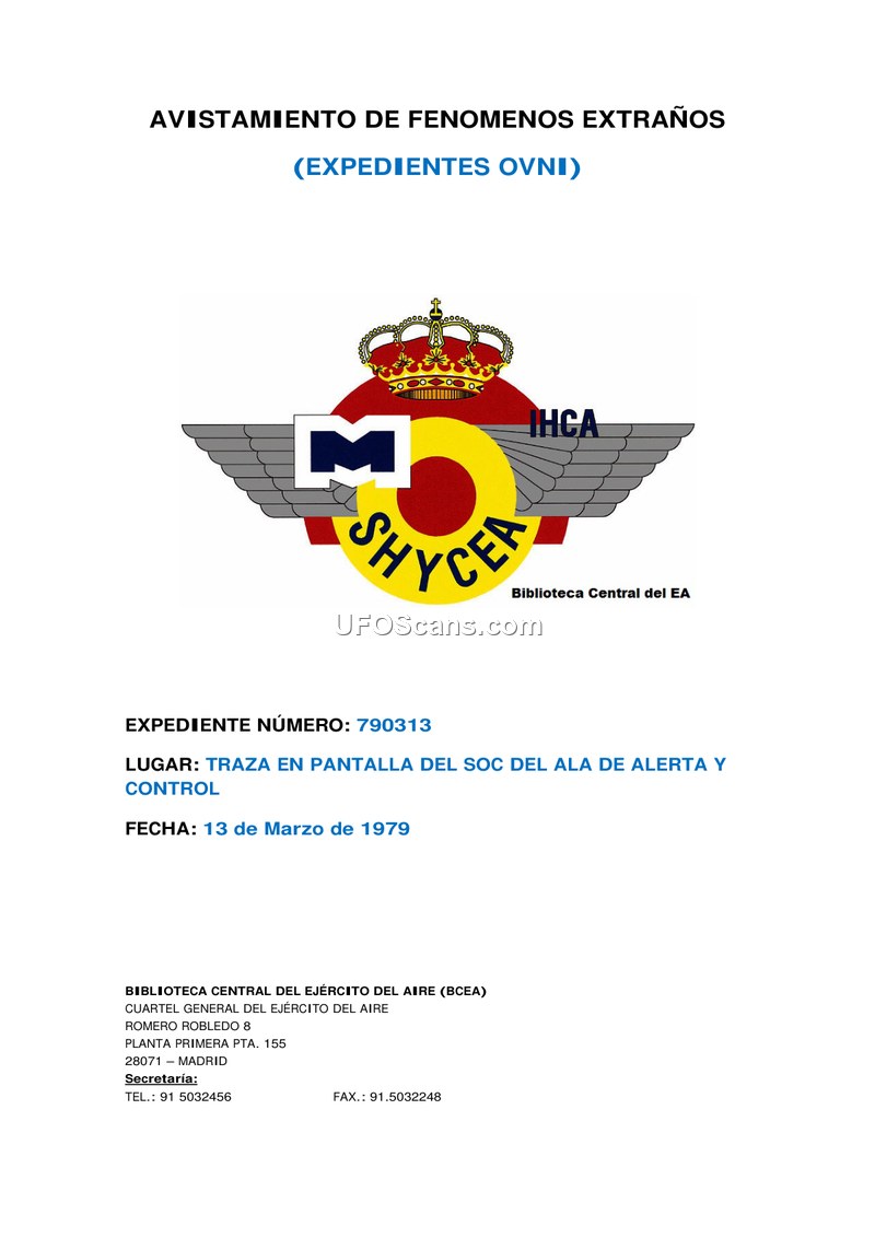 A 1979 Spanish Air Force report detailing a radar-tracked UAP that performed high-speed maneuvers at high altitude. The incident was investigated by the Mando Operativo Aéreo and subsequently declassified in 1995.