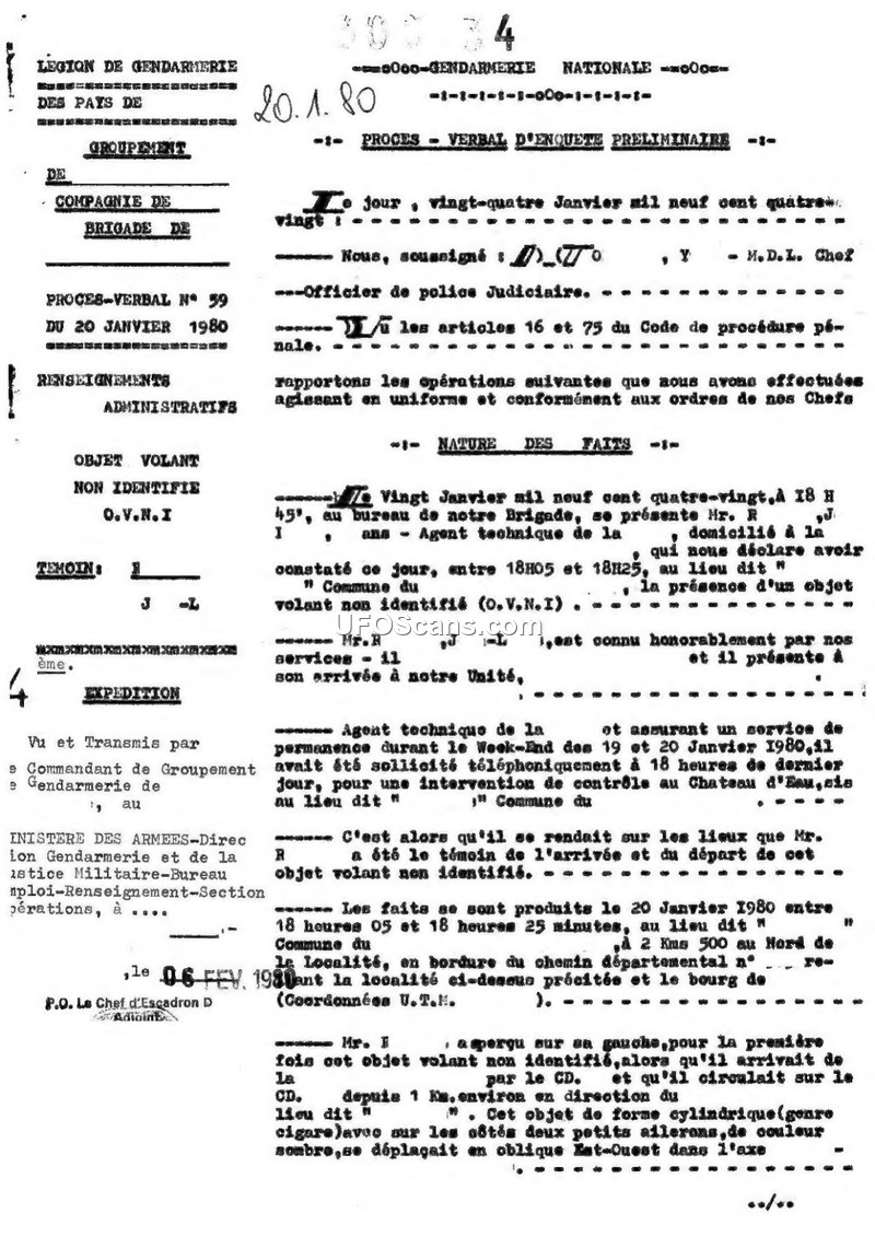 Proces-Verbal d'Enquete Preliminaire - O.V.N.I. - 20 Janvier 1980
