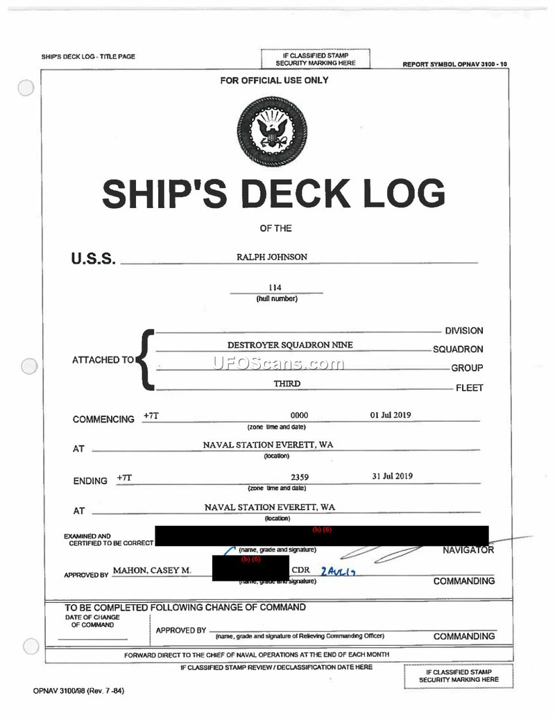 Ship's Deck Log — U.S.S. Ralph Johnson (DDG 114) — July 2019