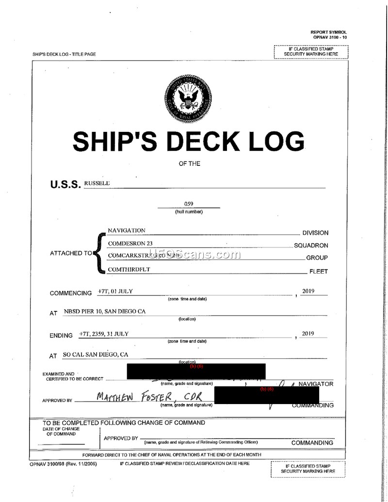 Ship's Deck Log of the U.S.S. Russell (DDG 59), July 2019