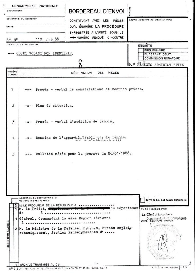 Gendarmerie Nationale Sighting Report: Objet Volant Non Identifié, 26 January 1988