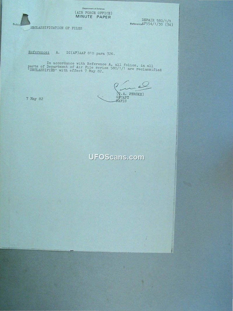 Department of Air File Series 580/1/1: Sighting of Unusual Aerial Phenomena