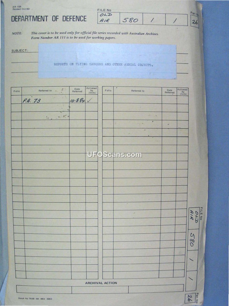Reports on Flying Saucers and Other Aerial Objects - File 580/1/1 Part 26