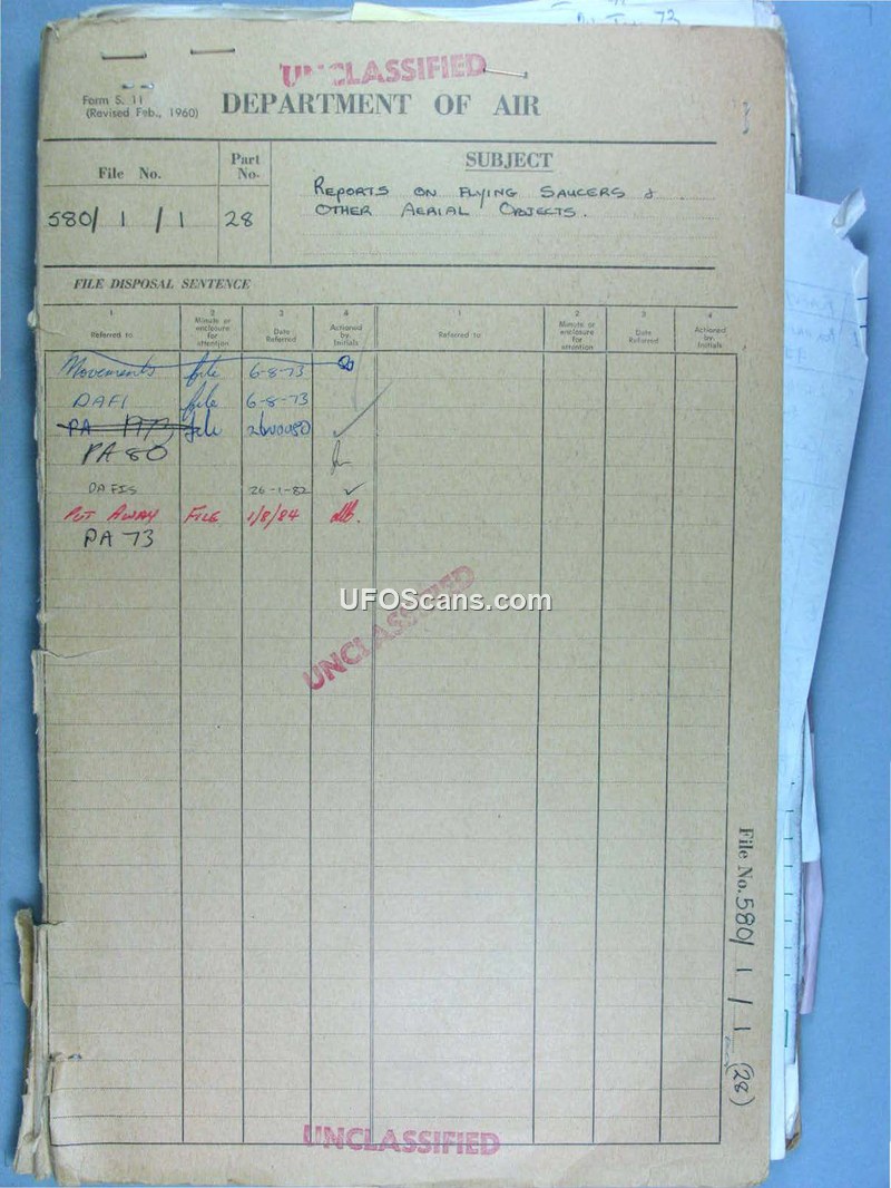 Reports on Flying Saucers & Other Aerial Objects - File 580/1/1 Pt 28
