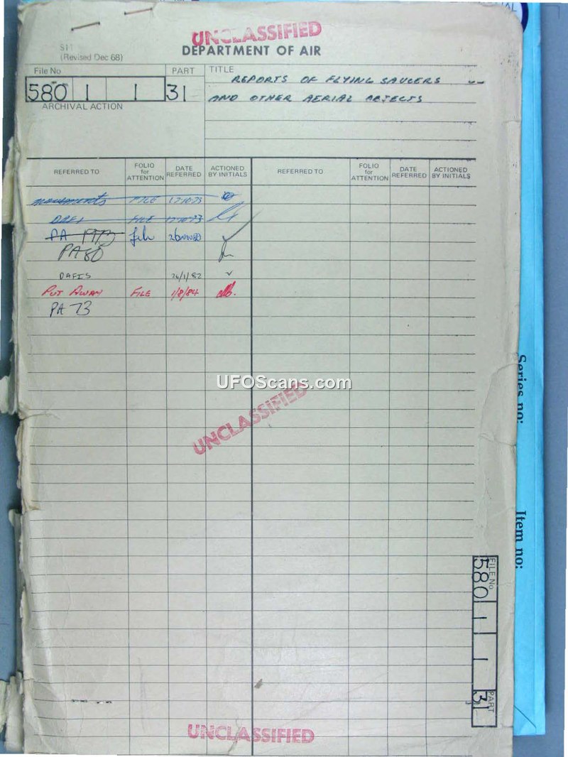 Reports of Flying Saucers and Other Aerial Objects - File 580/1/1 Pt 31