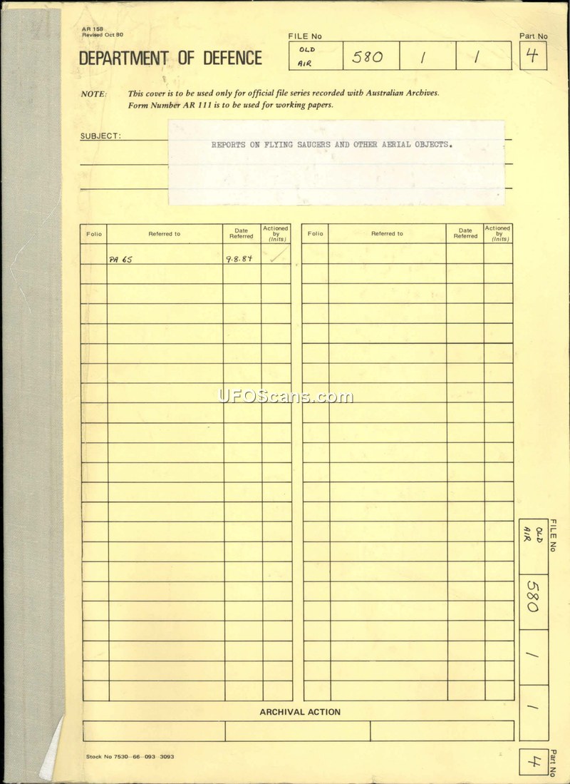 Reports on Flying Saucers and Other Aerial Objects - Department of Air File 580/1/1