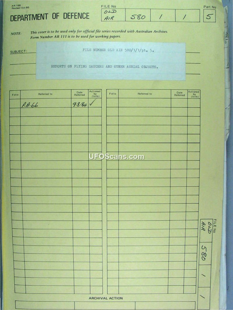 Department of Air File 580/1/1/pt. 5: Reports on Flying Saucers and Other Aerial Objects