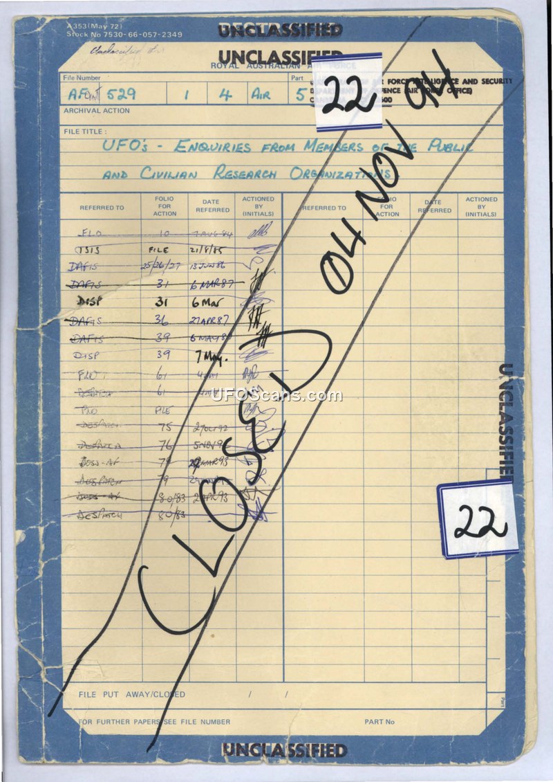 Study of Official Australian Government Involvement in the UFO Controversy - A Progress Report