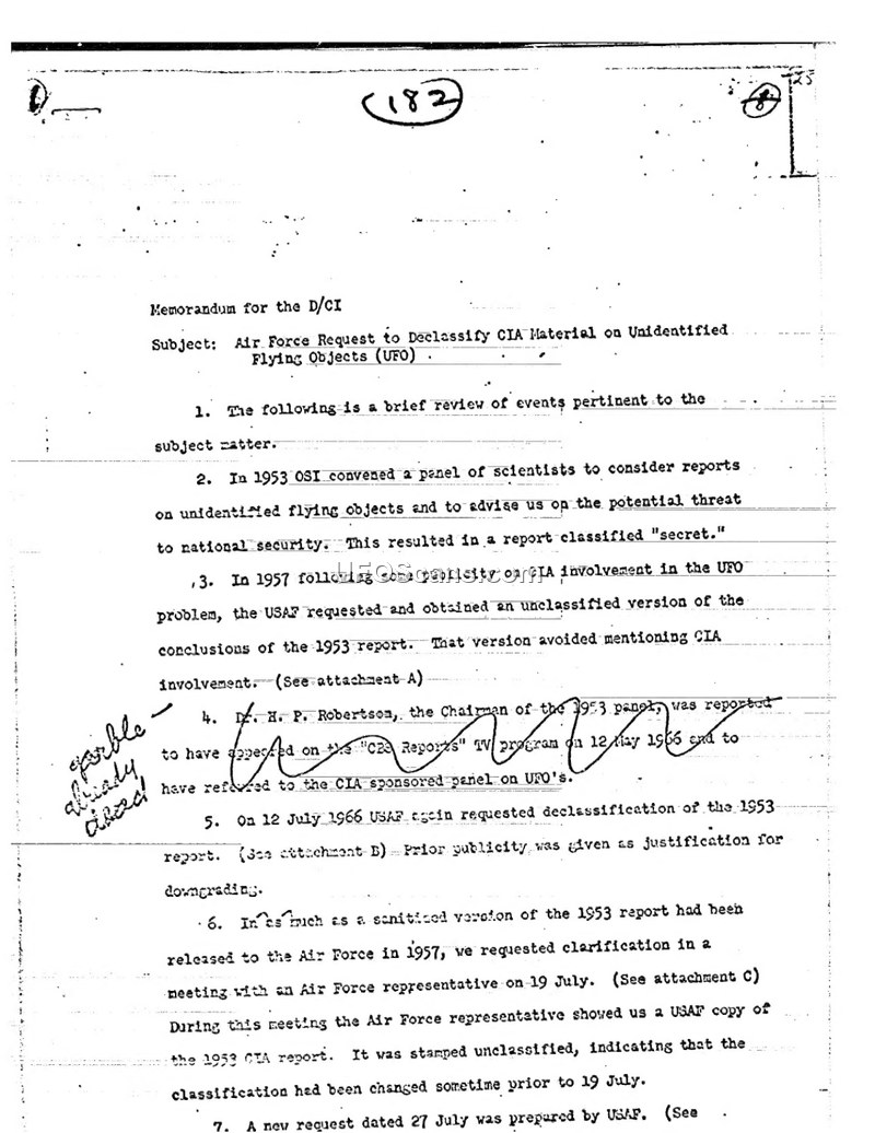 Memorandum for the D/CI: Air Force Request to Declassify CIA Material on Unidentified Flying Objects (UFO)