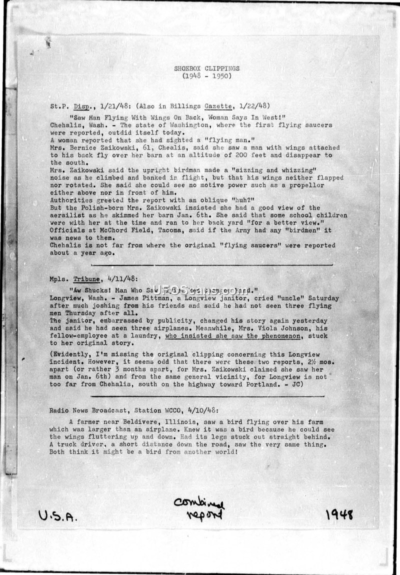 - Bernice ZaikowskiWitness of a 'flying man' in Chehalis, Washington